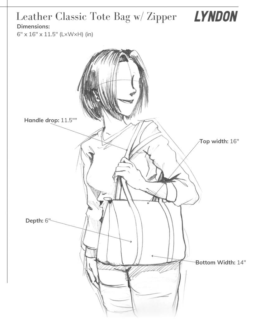 Embrace simplicity and elegance with Lyndon's Leather Classic Tote Bag with Zipper. This tote bag is made from Premium Full-Grain Leather and flaunts a smooth and natural shine that will make heads turn.